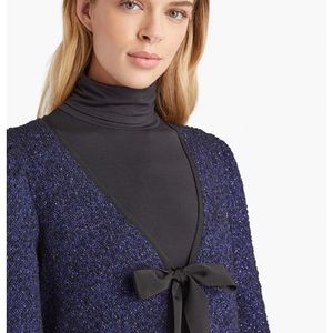 The Lou Lou is a long jacket with a subtle puff shoulders, bell sleeve, tie closure and back slit. It’s perfect over your favorite Nap Dress® or worn with jeans as a long cardigan.