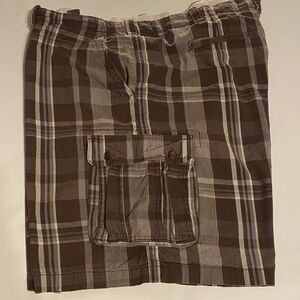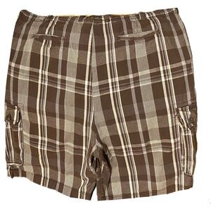 626 Blue Cargo Shorts Brown Plaid Tag 58R Measured 54 Plus Size