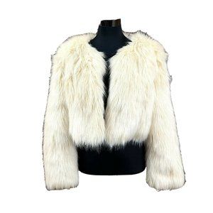 Women's AKIRA Chicago Red Label Faux Fur Jacket Open Front Fully Lined Ivory