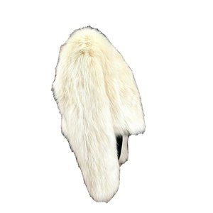 AKIRA Chicago Red Label Faux Fur Jacket Open Front Fully Lined Ivory Women Sz L.