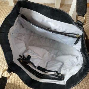Black leather City Bag for work or travel Cole Haan tote that can also be a shoulder bag. Tons of room for laptop, tablet and lunch. Enough pockets for phone, make up and your passport.