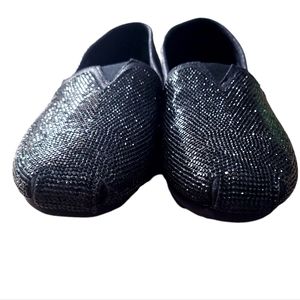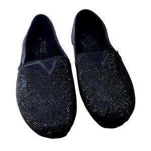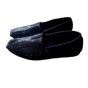 BOB'S SKECHER Black Glitter Plush Women's Size 8 Slip On Canvas Shoes