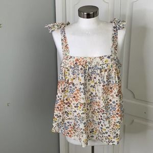 A.N.A MULTICOLORED COLORED FLORAL PRINT TANK WITH SHOULDER BOW ACCENTS MEDIUM