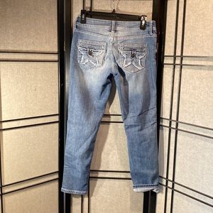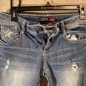 People’s Liberation size 5/6 straight legged cropped inseam 26 inches perfect condition- the distressed hole in the left leg is thru to the skin (just fyi!) amazing pockets details!