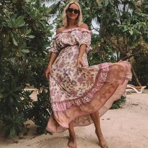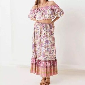 SOLD OUT Waverly Floral Gypsy Bohemian Off Shoulder Blouse & Maxi Ruffle Skirt