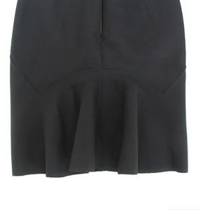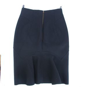 Inspired by 1950's couture, Roberto Rimondi and Tommaso Aquilano's 6267 has a taste for elegance and an eye for line. Curve-accentuating, knee-length skirt with fluted back hem. Made of black weighty soft virgin wool with zip closure at back. Fluted Hem, raw edge panels overlay each other with tonal stitching.