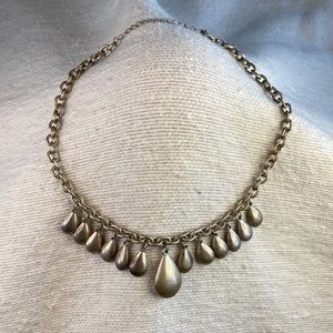 This 18" Silver Teardrop Chain Necklace has a wonderful patina that gives great interest and character. The silver teadrop bobbles lay beautifully against the skin. And the lobster clasp secures the necklace. This is a great casual accessory!