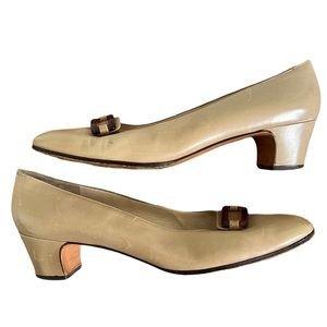 Ferragamo • Vintage Cream Chunky Heels with Tortoise Buckle Detail Size 9