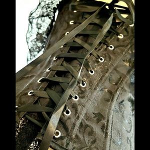 NEW !!!! L Black Lace Sleeves Corset