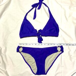 INGEAR Bikini. Royal Purple. Silver Tone Rings in Top and Bottoms. Size Large