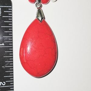 NEW! Natural Howlite beads and teardrop pendant dyed a vibrant red showing a very thin well defined and evenly distributed grey/black matrix( indicative of Howlite). Round Beads are alternated with White Freshwater Pearls and center bead is a drop Howlite pendant.