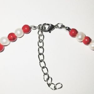 SALE! NEW! Red Howlite Beads & Pendant Necklace w/ White Freshwater Pearls