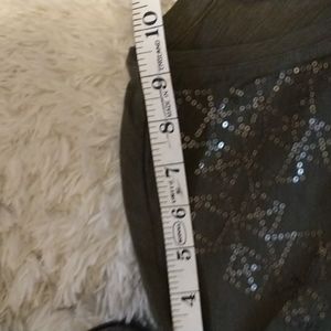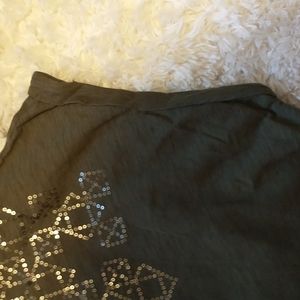 Cute 100% cotton top with V-neck and matching sequins. Beautiful earthy green with rolled up capped sleeves. Like new condition. No wear, flaws, snags or odors. *All my listings are clean and stored in smoke free home and closet. Quick shipper and will arrive nicely packaged. Bundling options are available. Reasonable offers considered.
