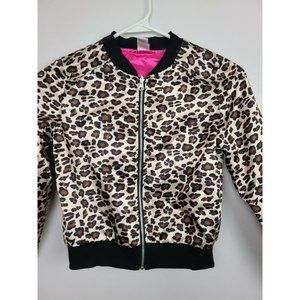 Total Girl Brown Black Leopard Print Lightweight Bomber Jacket Size 10/12