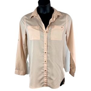 Calvin Klein sheer roll tab button down dress shirt , size L