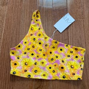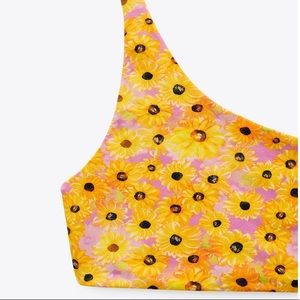 NWT Zara cropped one shoulder retro sunflower print top! the cutest top and perfect for the summer time. looks so cute with a pair of white shorts or a mini skirt! fun and flirty and photographs so well! sold out on the website. size medium but can definitely fit a size small too! very stretchy. reasonable offers are welcomed