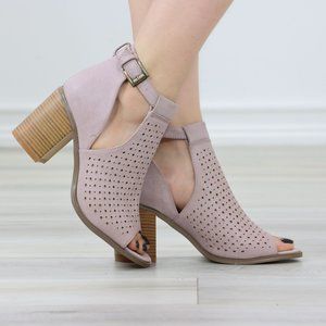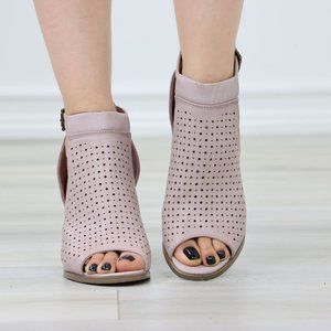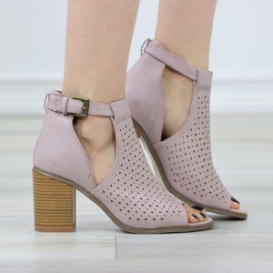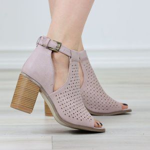 Peep Toe Mauve Faux Leather Heeled Ankle Booties