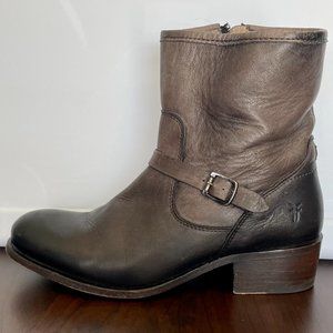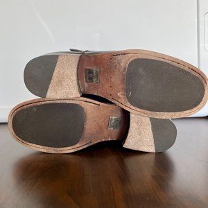 Sometimes re-thinking one simple detail is all it takes to modernize a classic style- take the buckles on these booties, for example. Crafted from washed and oiled vintage leather, the 'Veronica' have hand-stitched Goodyear welt soles that are durable and waterproof.