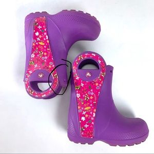 Crocs Handle It Floral Rubber Rain Boots Purple