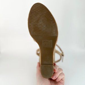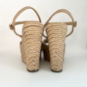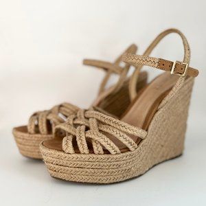 Schutz Leather Espadrille Woven Raffia Jute Strappy Platform Heels Wedge Sandals