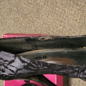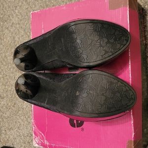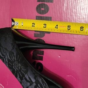 Dollhouse platform stilettos heels. Size 7.5. Color Black. Used with only one scratch and it's shown in the picture.