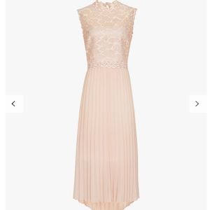 Designed with a delicate lace bodice, the Aideen dress from Reiss is an elegant option for any special occasion. The skirt sits high on the waist, elongating your silhouette, while the dropped hemline and pleating detail adds graceful movement. Its high neckline and empire waist give a sophisticated finish and wears well with nude stilettos and a sleek clutch bag.