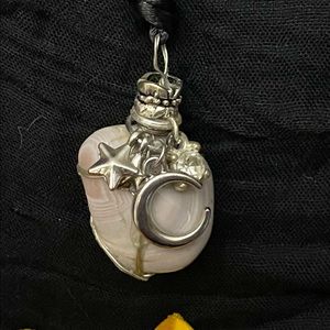 Hand Wrapped Crystal necklace crafted by myself with charms to embellish. The Crystal is a pink opal stone and is a beautiful piece. I can also customize and personalize. NWOT