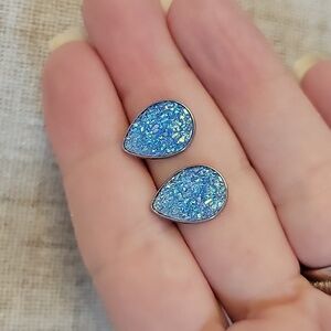 Blue Etched Glass Statement Earrings