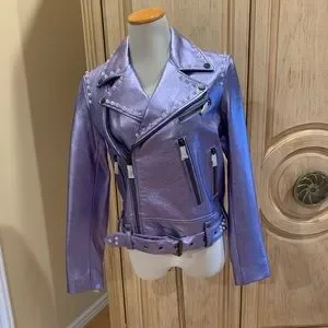 JOCELYN women's leather moto jacket metallic Lilac with chain Size XS NWT $650