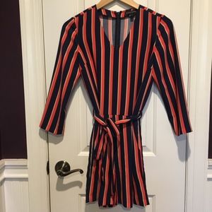 Banana Republic navy, orange, and white striped belted romper with back zipper & pockets