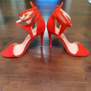 excellent summer sandal size 10. fire engine red!!! never worn. 4 1/2inch heel. offers welcome!