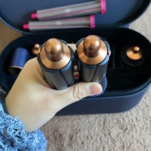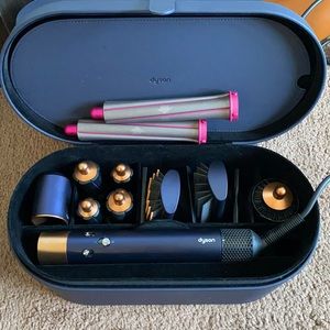 Dyson Prussian blue airwrap with extra long barrels (1.2” 30mm). Come with case and heat map. No scratches or flaws. Everything is like new!