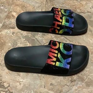 🔴 Black & rainbow crystal Michael Kors slides