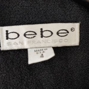 Linen -blend black double-breasted Bebe Blazer with slight padded shoulders from the 1990s.This is a beautiful jacket that was worn with care and is a classic wardrobe item expertly crafted in the USA. Hails from the origins of the Bebe brand. Size 4 (small) no flaws or wear or tear on the lining. This is a substantial weighted fabric and could be worn most seasons.