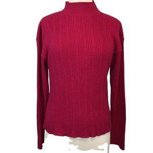Vintage L.C.B.B. LTD. Sweater Medium Made in USA Cable Knit Faux Turtleneck Red