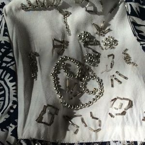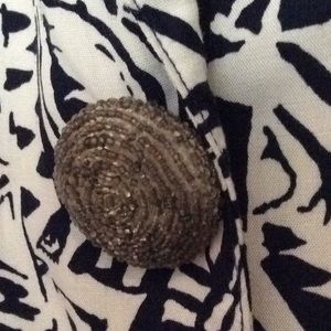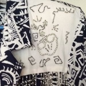 3 Embellished w glass beads, Buttons - Snap Closure. Front,top, silver beads&glass beads. Straight sleeves, straight back w 2 darts,2 Pocket flaps-no pockets.Removable shoulder pads