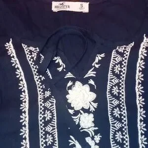 Hollister Size S Navy Blue Shirt with Embroidered/Tie Front. This shirt is in excellent condition with no holes and stains.