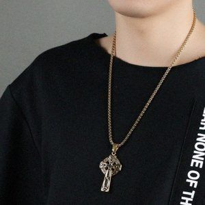 "Engraved Celtic Cross Necklace for Men, BL55590082