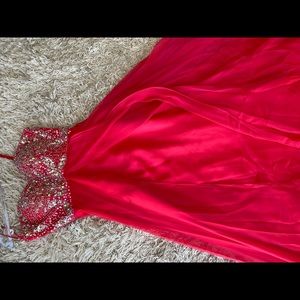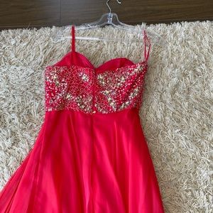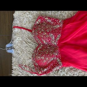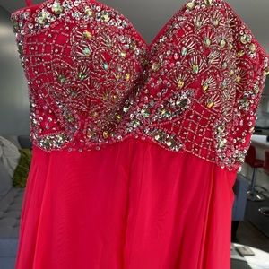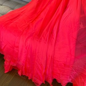 Pink and orange prom/grad dress with train. Size 4 in excellent condition worn once! Straps are removable so can be worn strapless