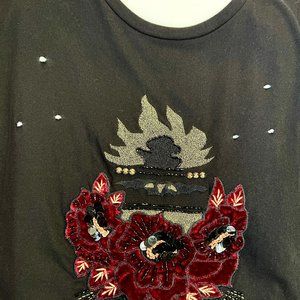 So so unique! NWT GUESS Studded-Appliqué Ripped T-Shirt XS GUESS accents plush velvet appliqué with edgy studs and gold embroidery on this slightly ripped rock 'n roll-chic T-shirt. Black