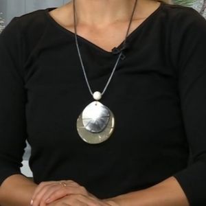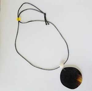 White/Black/Tan Genuine Buffalo Horn 2 Disk Pendant Necklace on Cord