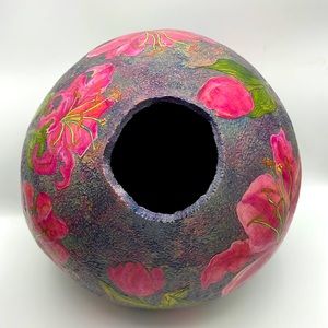 A combination of Pyrography, Carving and Water Paints, I Free Hand the artwork with a Wood Burner, Paint and Seal the Gourd by Brushing on a Flexible Acrylic Sealer. This One of a Kind, Original Gourd Art is NOT intended to hold water even though the inside is sealed.