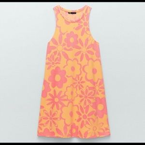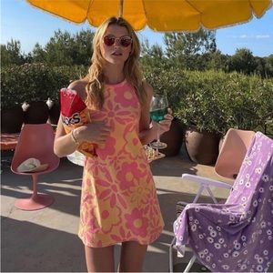 Zara Jacquard Terrycloth Mod Floral 60s Halter Mini Dress … in bright pink & orange