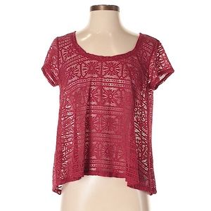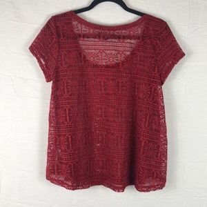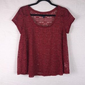 American Eagle Floral Lace Style Crop Top | Red | Size Medium