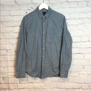 J CREW MENS DENIM POCKET BUTTON DOWN SHIRT EUC SZ S