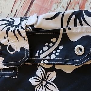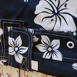 Has two pockets. Floral design.
