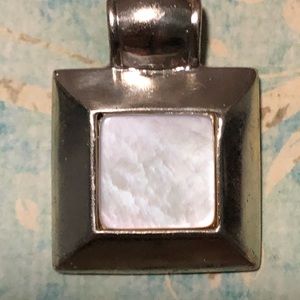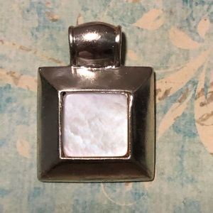 Vintage 3/4” square sterling silver and mother of pearl pendant