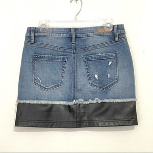 BLANK NYC Distressed Denim and Black Faux Leather Stretchy Mini Skirt Size: 27