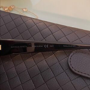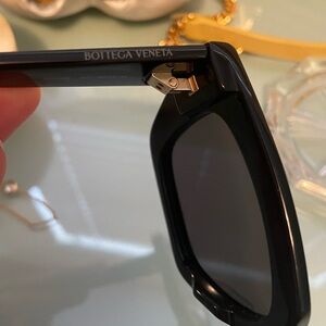 Bottega Veneta Geometric Square in Black. Bottega Veneta Geometric Square in Black. Acetate frames. 52-18-145 in mm. Signature gold ribbon detail on temples. Includes soft pouch. Made in Japan. BOTR-WA22. BV1030S 001.