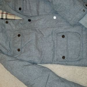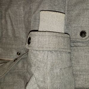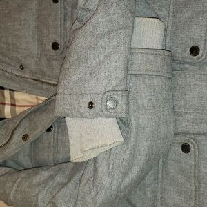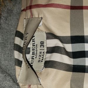 Hqeather gray burberry winter jacket. the hood is detachable with fur lining. Interior and inner sleeves has the signature burberry checks. Great condition with no signs of tears, fabric pills or stains. The interior size tag is pretty faded from rubbing against my clothes though but no one can see that. other than that, it looks great and has more years of wear. Unfortunately for me, I've added a few pounds to my frame so can no longer wear. size 38 as stated on the tag.